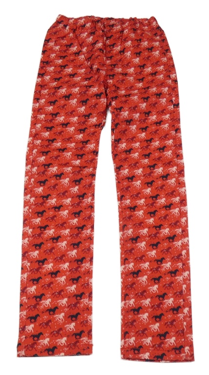 Červené plátěné kalhoty s koníky