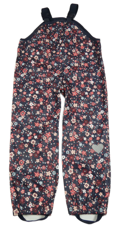 Tmavomodré nepromokavé laclové kalhoty s kytičkami Topolino