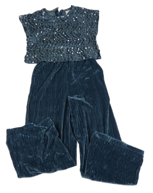 Tmavomodrý sametový kalhotový overal s flitry Zara