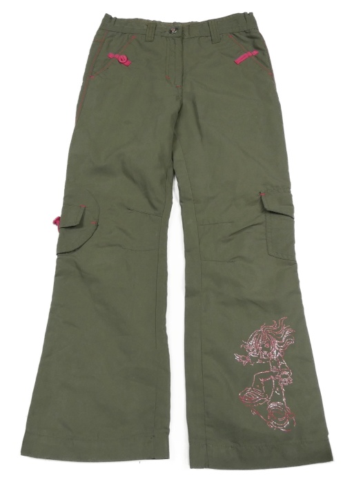 Khaki šusťákové podšité kalhoty s dívkou x-mail
