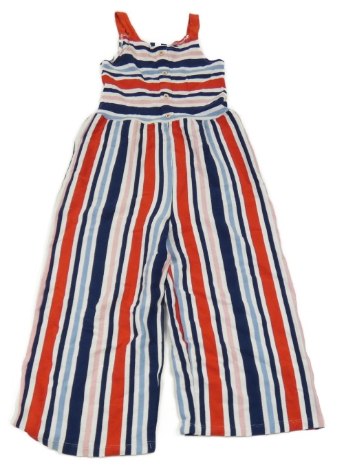 Červeno-modro-bílý pruhovaný žebrovaný kalhotový overal