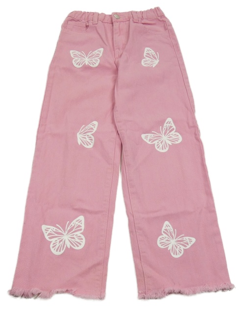 Růžové wide leg rifle s motýly Shein
