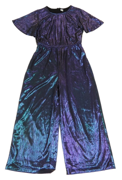 Fialovo-zelený lesklý kalhotový overal Tu