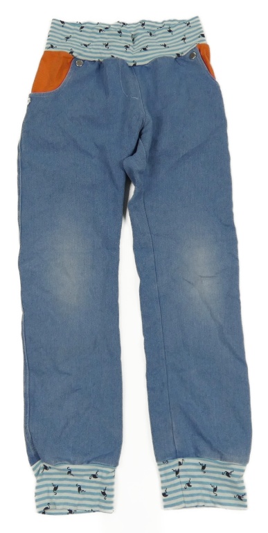 Modré cuff teplákové rifle s úpletovým pasem s plameňáky