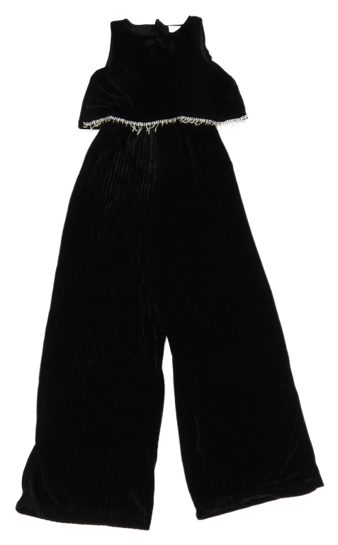Černý sametový kalhotový overal s kamínky Zara