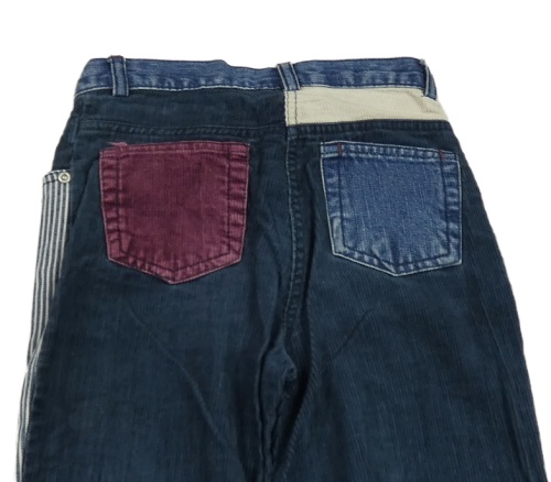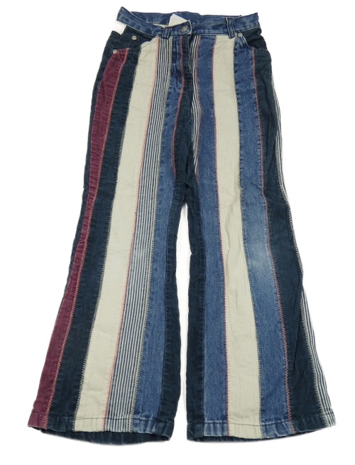 Modro-smetanovo-vínové pruhované flare rifle s manšestrovými prvky