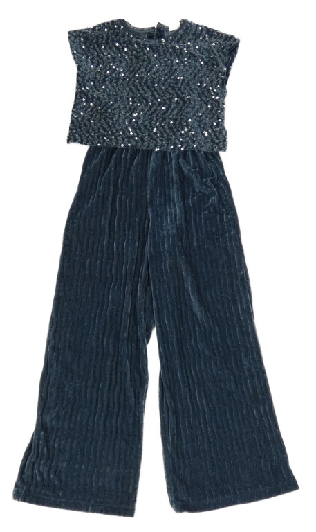 Tmavomodrý sametový kalhotový overal s flitry Zara