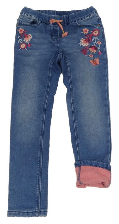 Modré zateplené skinny rifle s výšivkami květů C&A