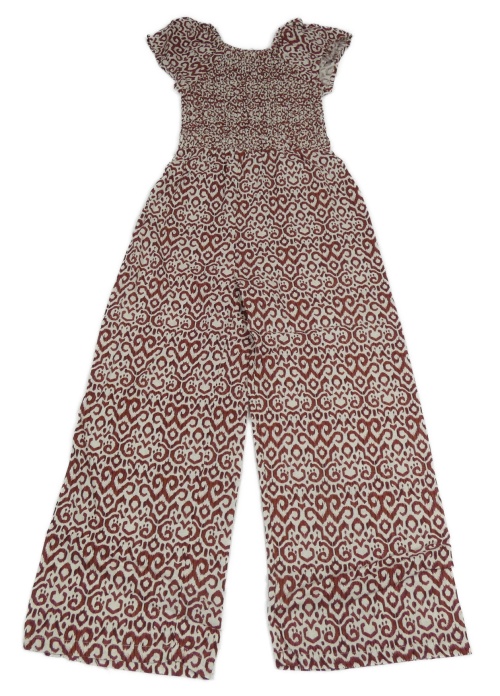 Hnědo-bílý vzorovaný žabičkový kalhotový letní lněný overal C&A