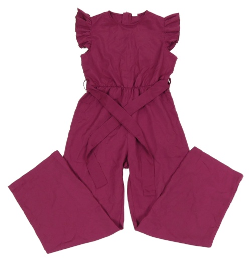 Vínový kalhotový overal s volánky a páskem Shein