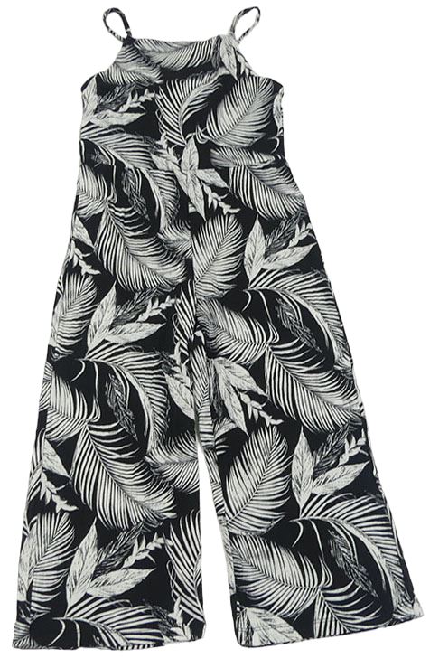 Černo-bílý žebrovaný kalhotový culottes overal s lístečky H&M
