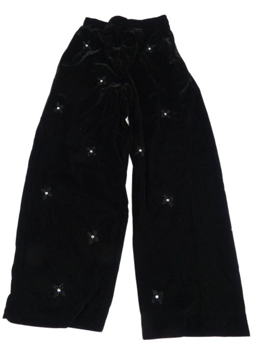 Černé široké sametové kalhoty s kamínky a korálky ZARA