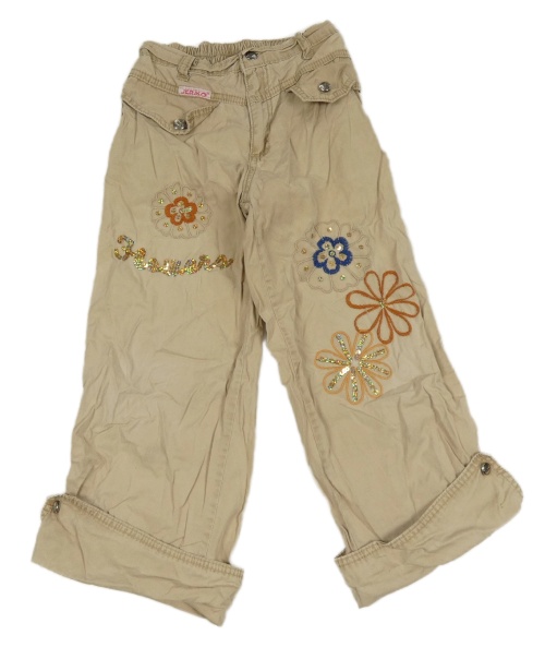 Béžové plátěné crop kalhoty s kapsami s květy