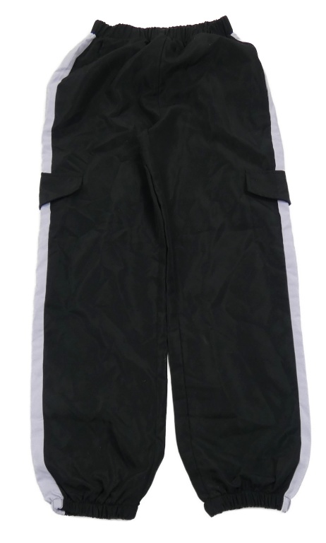 Černé šusťákové cuff kalhoty s fialovým pruhem Shein