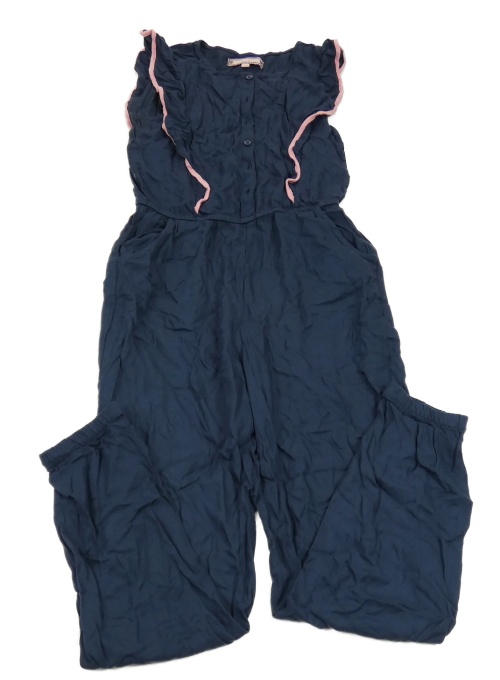 Tmavomodrý lehký kalhotový overal s volánky Pocopiano
