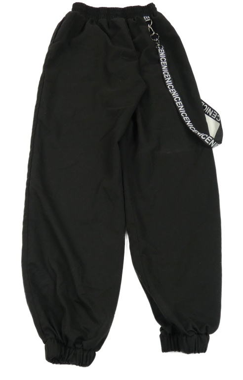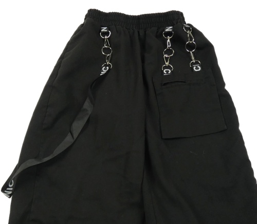 Černé šusťákové cuff kalhoty s řemínky Iefiel