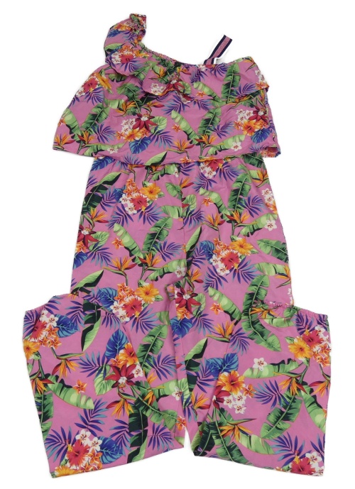 Růžovo-barevný květovaný lehký kalhotový overal