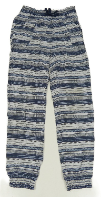 Tmavomodro-bílé vzorované lehké kalhoty Yigga
