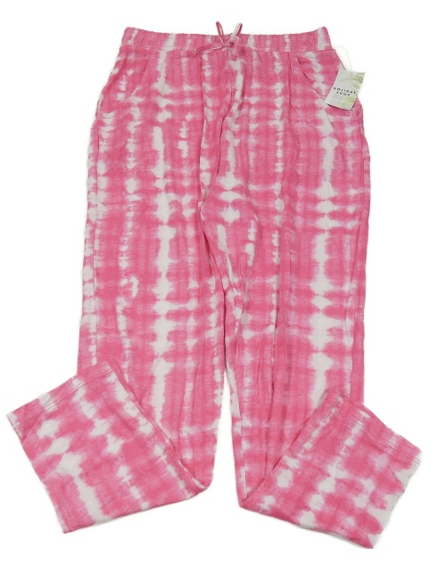 Nové - Tmavorůžovo-bílé batikované lehké kalhoty Matalan