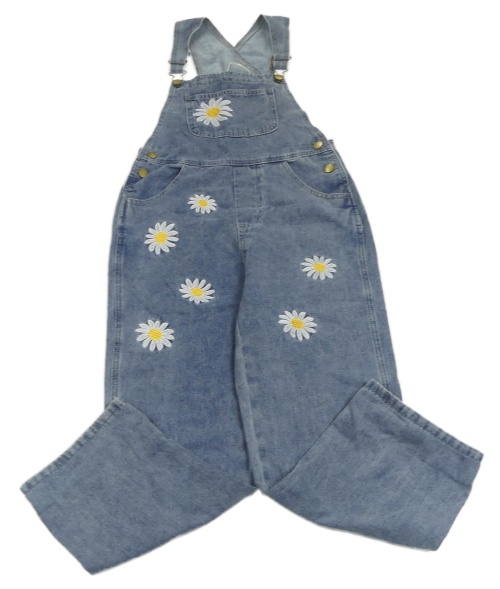 Modré laclové rifle s květinami a kapsou