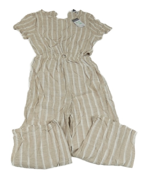 • Nové - Béžovo-bílý pruhovaný lněný culottes overal s průstřihy Primark