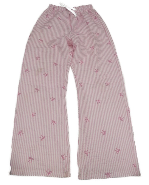 Růžovo-bílé pruhované krepové culottes kalhoty s mašlemi Shein