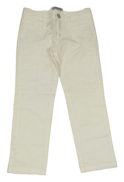 Smetanové plátěné crop kalhoty