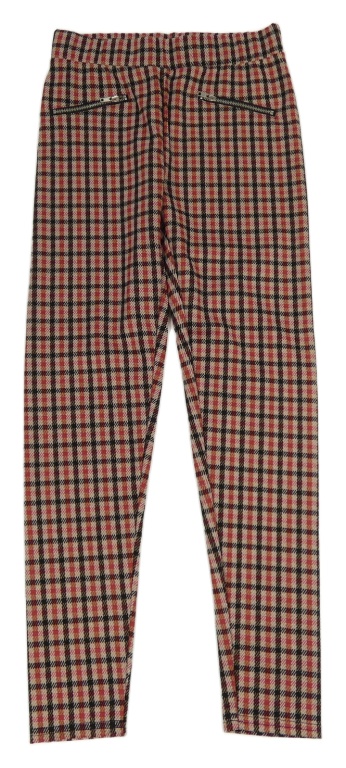 • Pudrovo-béžovo-černo-malinové kostkované vzorované tregínové kalhoty se zipy Page one young