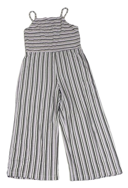 Levandulovo-černo-bílý pruhovaný žebrovaný kalhotový culottes overal H&M