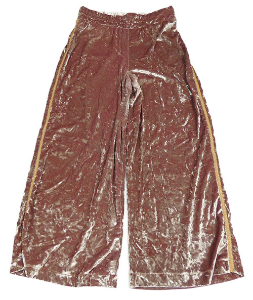 Starorůžové lesklé sametové culottes kalhoty s pruhem