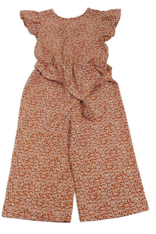 Rezavo-bílý květovaný culottes overal s páskem Matalan