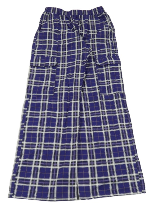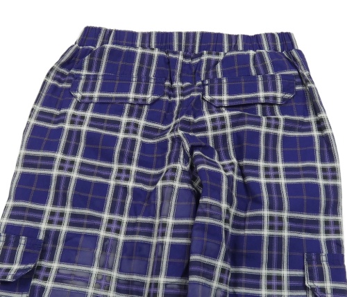 Tmavofialovo-bílo-hnědo-fialové kostkované cargo wide leg plátěné kalhoty H&M