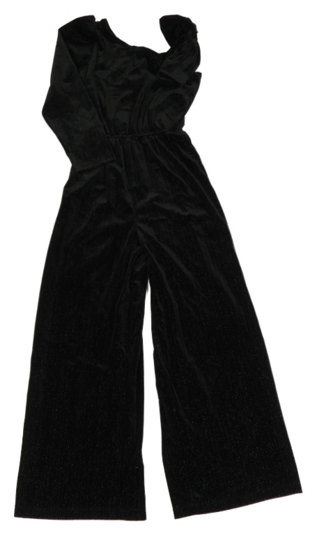 • Černý sametový třpytivý kalhotový overal s jedním rukávem ramenem Zara
