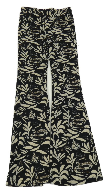 • Černo-světlebéžové vzorované žebrované flare kalhoty s hady a srdíčky shoeby