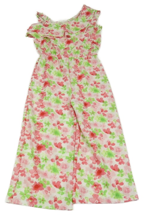 Růžovo-limetkový kytičkovaný letní culottes overal Primark