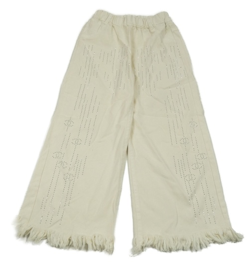 Béžové wide leg kalhoty s kamínky a třásněmi