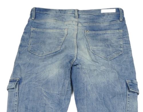 Světlemodré šisované cargo skinny fit teplákové rifle se zipy H&M