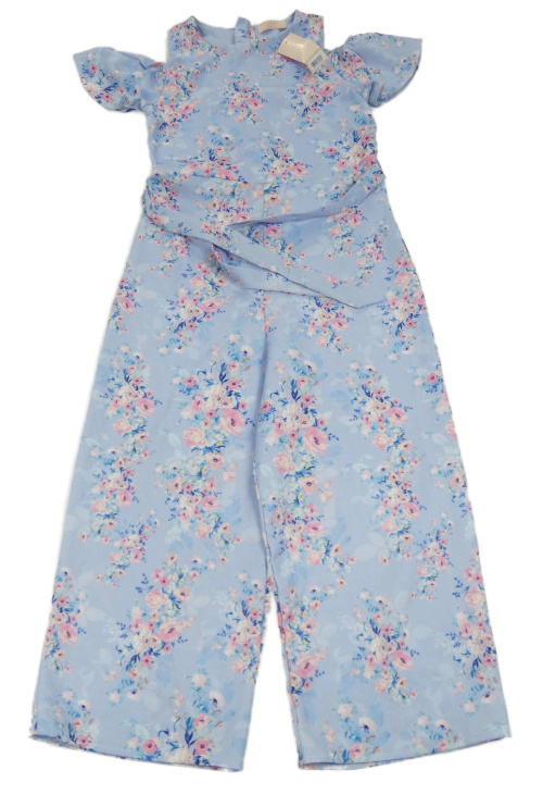 Nové - světlemodrý kalhotový culottes overal s kytičkami a volnými rameny a páskem LIPSY LONDON