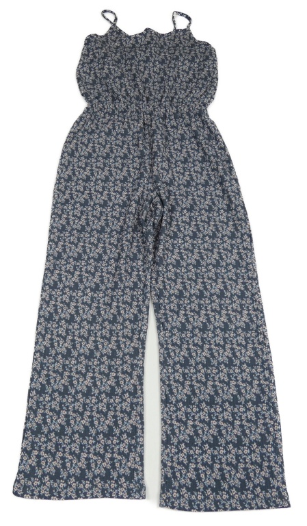 Tmavomodrošedý kytičkovaný mačkaný kalhotový overal PRIMARK