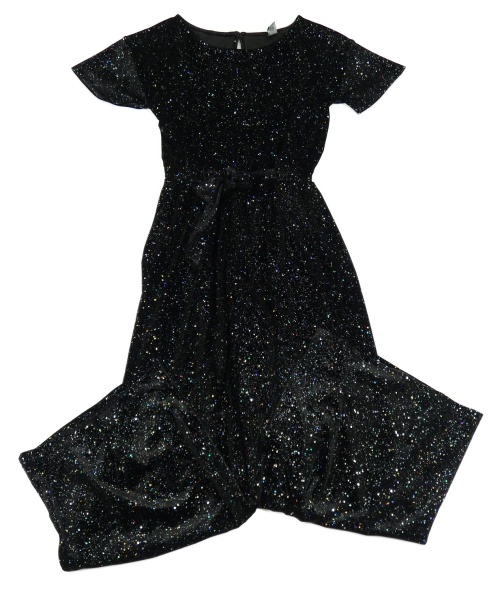Černý sametový culottes overal s barevnými třpytkami Tu