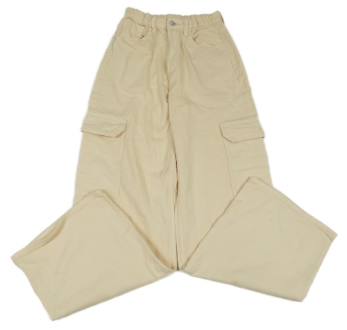 Smetanové široké rifle s kapsami a vysokým pasem H&M