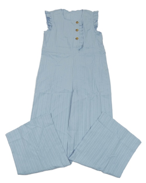 Světlemodrý pruhovaný kalhotový overal s volány a knoflíky Shein