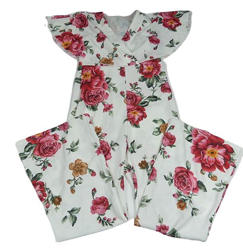 Bílý zvonový kalhotový overal s růžemi SHEIN