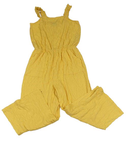 Žlutý žebrovaný mačkaný kalhotový culottes overal PRIMARK