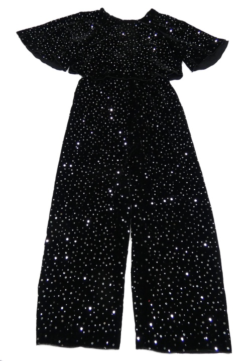 Černý sametový kalhotový overal s flitry Zara