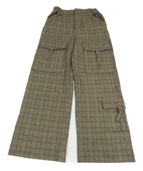 Hnědo-mahagonovo-černé kostkované vzorované cargo široké kalhoty ZARA