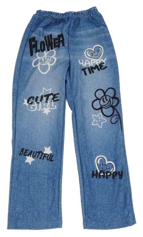 Modré lehké kalhoty riflového vzhledu s obrázky