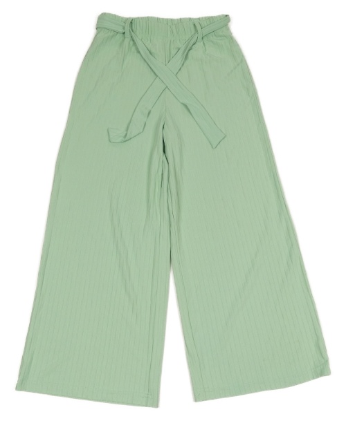 Světlezelené žebrované culottes kalhoty s páskem Page one young