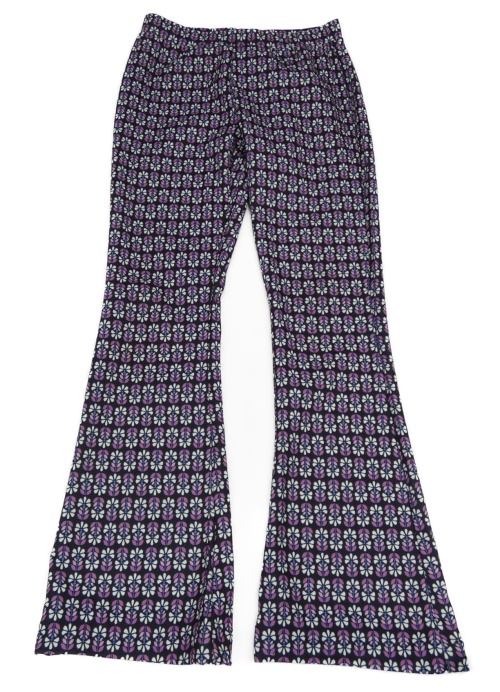 Černé vzorované flare kalhoty s kytičkami