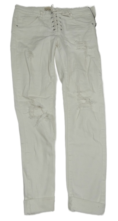 Bílé skinny rifle s prošoupáním a šněrováním
